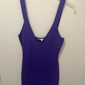 This is a super cute purple dress with horizontal band details. It is a size small and the material is very stretchy. For reference, I am a size 6 in the picture.
