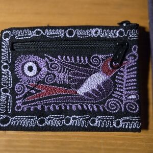 Fly high with this unique embroidered crossbody bag and matching wallet! The intricate bird and floral design is stunning, with vibrant purple, maroon, and white stitching. This bag is perfect for festival season, running errands, or adding a pop of art to your everyday outfit. It has multiple zip pockets to keep you organized on the go. Both the bag and wallet are in excellent condition.