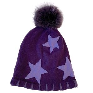 Purple Cashmere Handmade Leti-Kat Winter Hat Toque Faux Fur Pompom Stars