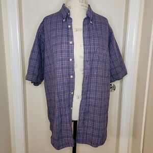 Lavender & lilac Purple with black stripes Checkered Plaid Casual Buttondown short sleeve shirt with envelope stitched left front patch pocket, by Club Room.