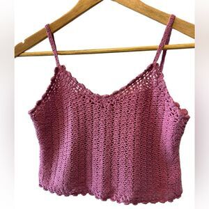 Purple Crochet Crop Spaghetti Strap Casual Top S