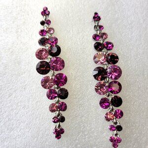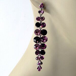 Purple Crystal Drop Earrings Long Dangling Crystal Earrings