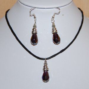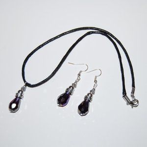 Purple Crystal Glass Necklace and Earring Set,Purple Necklace Earrings,Candy Color