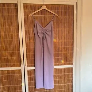 Spaghetti strap dress with a front tie detail. Can be worn formally. I am 5’3, see photo for length.