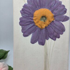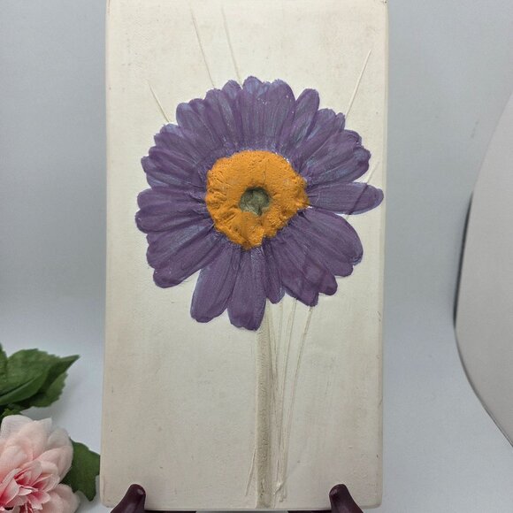 Purple Gerber Daisy Stoneware Clay Art Hand Painted Tile Susan Robertson Pottery