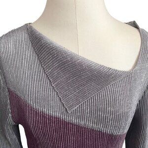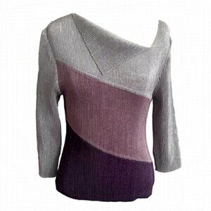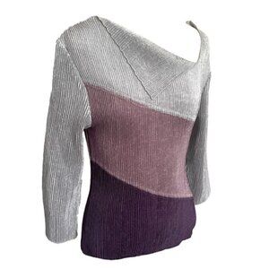 Purple Gray Colourblock Accordion Pleated Springy Stretchy Long Sleeve Top - S