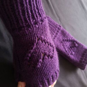 Purple Handmade Valentines Ajour Knit Fingerless Texting Gloves Mittens