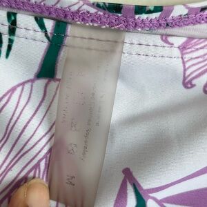 • Color: Purple (top), White with purple & green tropical print (bottoms)