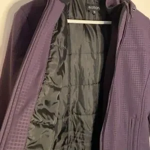 Purple Jacket with Lining and Hood, Two Front Pockets, Inside Pockets, Size Small, Great for Spring/Fall Weather and Rain, Was bought as a horse back riding jacket brand new and never worn, 10/10 condition, Great for any activity