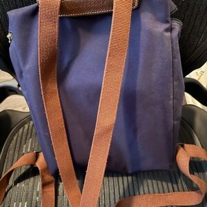 Longchamp backpack in deep purple. Bag is relatively new, only used a few times. There are some spots on the front of the bag that are a little discoloured (as shown in the photos). inside is in perfect condition and so are the backpack straps.