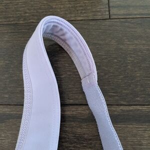 Really cute pale purple sports bra from Lululemon. It's very supportive and durable with a higher neckline and thick straps along with multiple adjustment clips on the back band.