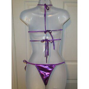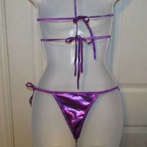 Purple Metallic Bandeau Top Thong Bikini - NEW