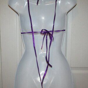 Purple Metallic Micro Strappy String Thong Bikini - NEW