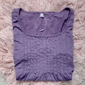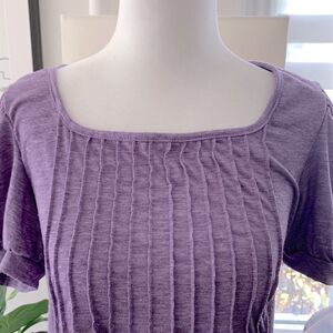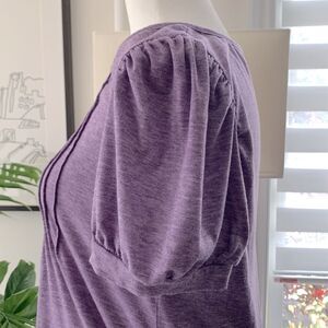 This relaxed-fit blouse in a rich purple hue features charming puff sleeves and a ribbed texture, offering both style and comfort. The flowy design and soft fabric make it a versatile choice for casual outings or dressier occasions.