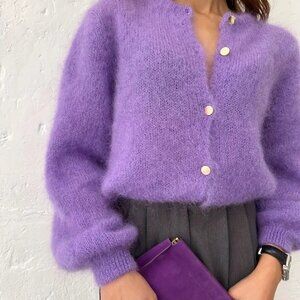 Purple Reversible Lightweight Cardigan Pullower Sweater Wool Blend