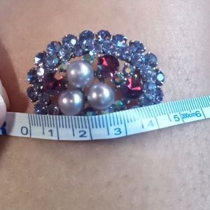 Silver tone purple Rhinestone Broach with simulated pearls is the perfect addition to any jewelry collection and most definitely a great accent for any outfit.