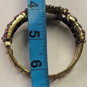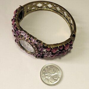 Purple Rhinestone Watch Cuff Band Round Face Ornate Fashion Watch - NEW !