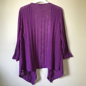 Purple Ribbed Mesh Knit Open Waterfall Cardigan