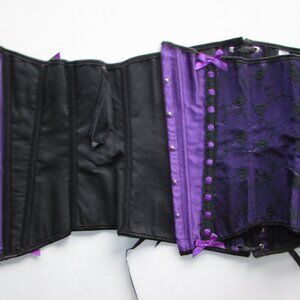 Purple Satin Black Lace Underbust Waist Cincher Corset Set - NEW