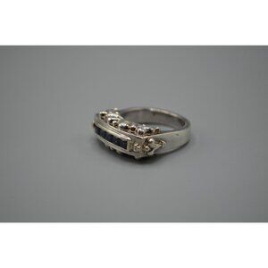 A sterling silver ring featuring five bluish purple stones in a single row cluster setting, possibly amethysts. It's stamped "P11 925 Nepal". It weighs 17.25g and is a size 10. In excellent condition, please review photos closely.