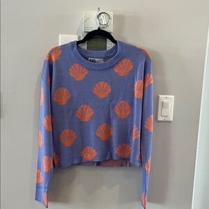 100% acrylic. Hand wash recommended. Ribbed trim. Lightweight knit fabric. Crew Neckline