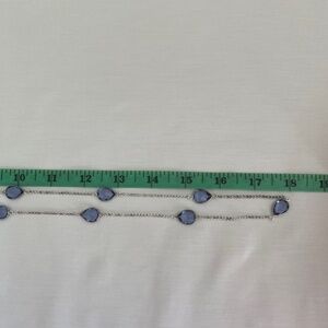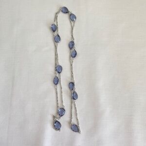 Purple Teardrop Crystal Cabochon Silver Plated Chain Necklace Length 36"