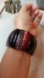 Rich tones of purple..wine..burgundy. Chunky easy on acrylic stretch bracelet. Good preowned condition