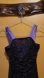 Elegant purple and black ruched dress featuring a bow detail. Perfect for special occasions.