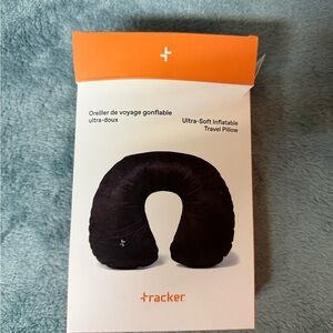 Tracker Ultra-Soft Inflatable Travel Pillow in black. It's in great condition and comes with the original box. This pillow is perfect for travel and provides excellent support.