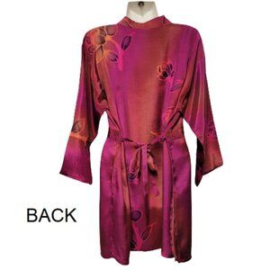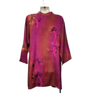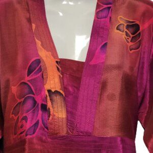 Reddish Magenta Purple Orange and brown shades on this Floral Motif Batik Blouse Tunic Top