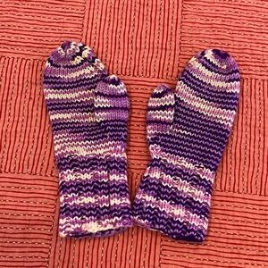 Purple and White handKnit wool Mittens