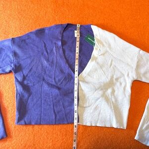 Purple and lilac two-tone ribbed cropped V-neck soft cardigan NWT
