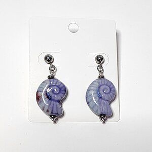 Brand new handmade light purple-blue ceramic conch shell earrings with stainless steel posts