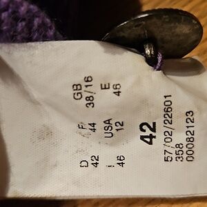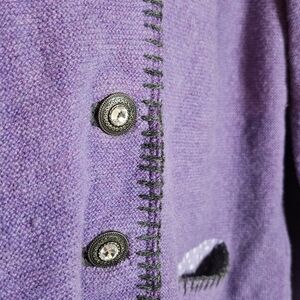 Beautiful polyester and wool purple-coloure cardigan. Details for women and fancy! Zirkon buttons! See the last picture for dimensions.