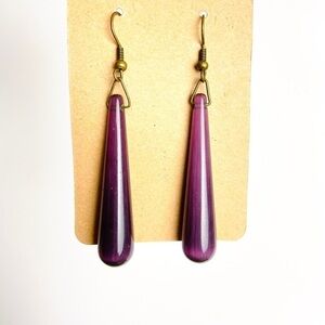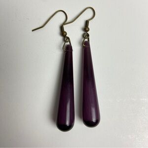 Purple stone cats eye stone dangle earrings. Boho style. Dark purple stone with beautiful cats eye effect hard to capture in photos. Pot metal/ pewter hooks.