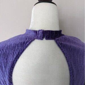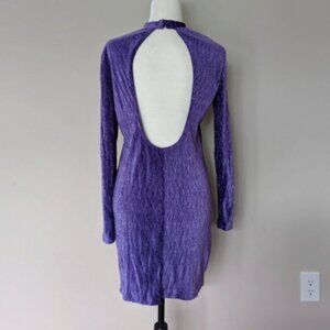 Purple crinkled velour textured open back long sleeve dress