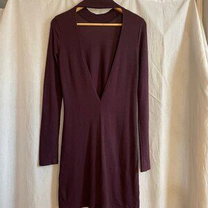 Soft bodycon dress, open back design, mock neck. Well-loved in its time, ready for a new life!