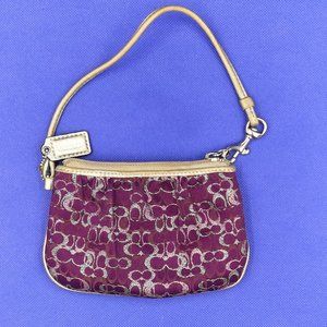 Purple/Pink/Silver Metallic Coach small signture canvas wristlet