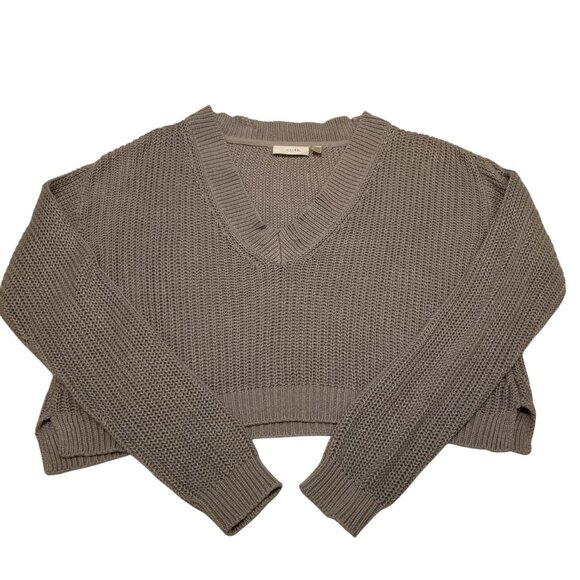 Purplish Grey Knit Cropped Sweater V-Neck Cotton Mix Medium Jumper Cozy Cloth