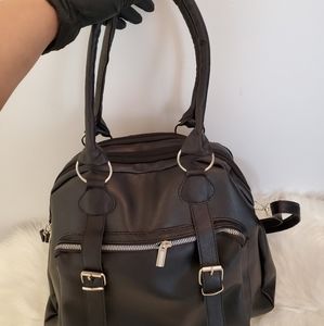 Brand new women bag zipper, strap, shiny black color 3 packet mideum size pu leather