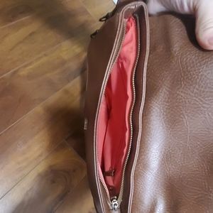 Adjustable shoulder strap, brown, vegan leather purse.