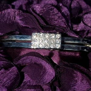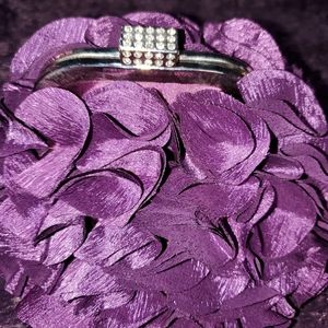 Small purple purse/clutch. Flower petals, rhinestone clasp.