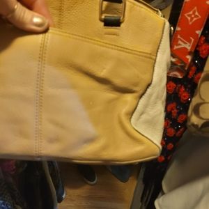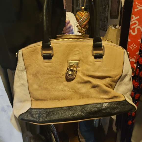 Beautiful tan brown with gold lock design Calvin Klein hand bag. excellent condition