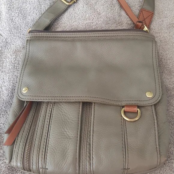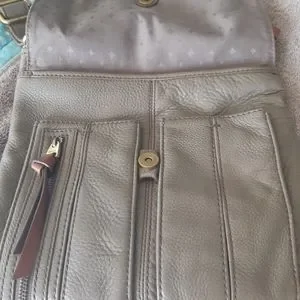 Leather crossbody. Very comfy to wear. Lots of compartments. Stitching coming loose as In pic. Leather is very soft approx 11.5 x 11 smokefree home