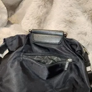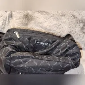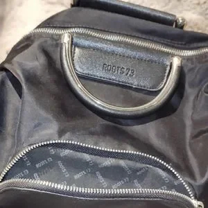 Roots 73 black crossbody or short handle purse zippered top, large front zippered pocket, small back zippered pocket small zippered pocket and 2 small pockets inside