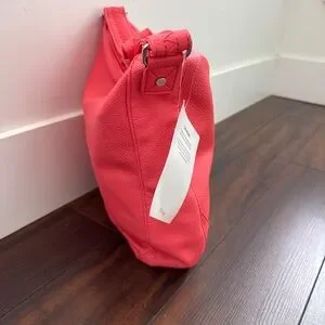 New Calypso Coral Midway Hobo Pebble purse with zipper closure and shoulder strap. One interior zipper and two flat pockets; exterior hidden pocket. Lovely zigzag stitch detail on strap. Approximately 12.5”H x 12’L x 3.5”D