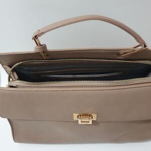 A fashionable purse for everyday use. Wear it from the top handle or as a crossbody. Features one main compartment with a zipper. Two flat pockets and one zippered pocket in the interior.