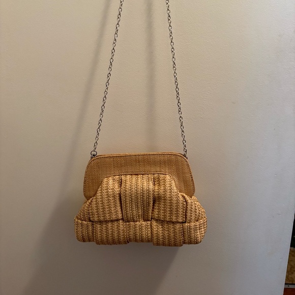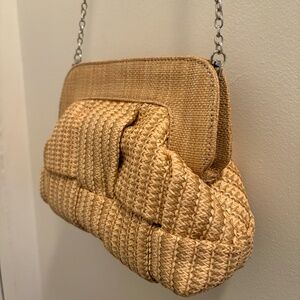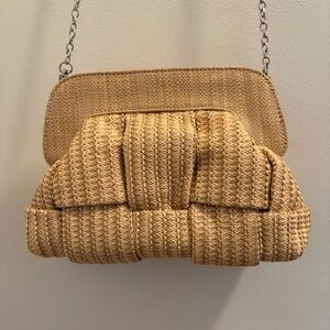 Purse, can be a clutch or worn with the chain Nathalie Beige Woven Crossbody Clutch Never used