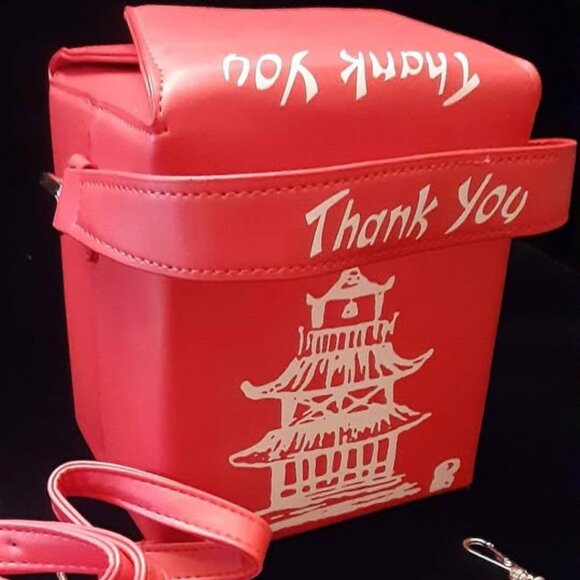 Chinese take out box purse. New/Never Used. This comes with 2 straps. Short handle & long with chain so can be worn as cross over. Red