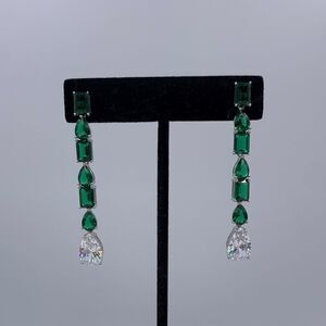 New, no tags. Evening bag, hard shell clutch, purse with detachable shoulder and handbag length chains included. Shimmering deep emerald green fabric with spectacular gold tone metal frame set with sparkling clear crystals on one side and gem set clasp. Big enough to hold iphone. Brought in specifically to wear with any of the emerald jewels available in Our Closet (some suggestions shown all listed and priced separately). Luxe look for little loot. Perfect for any special event or date. Let your inner diva out with an emerald collection from Lemon Squeezy Shop🍋